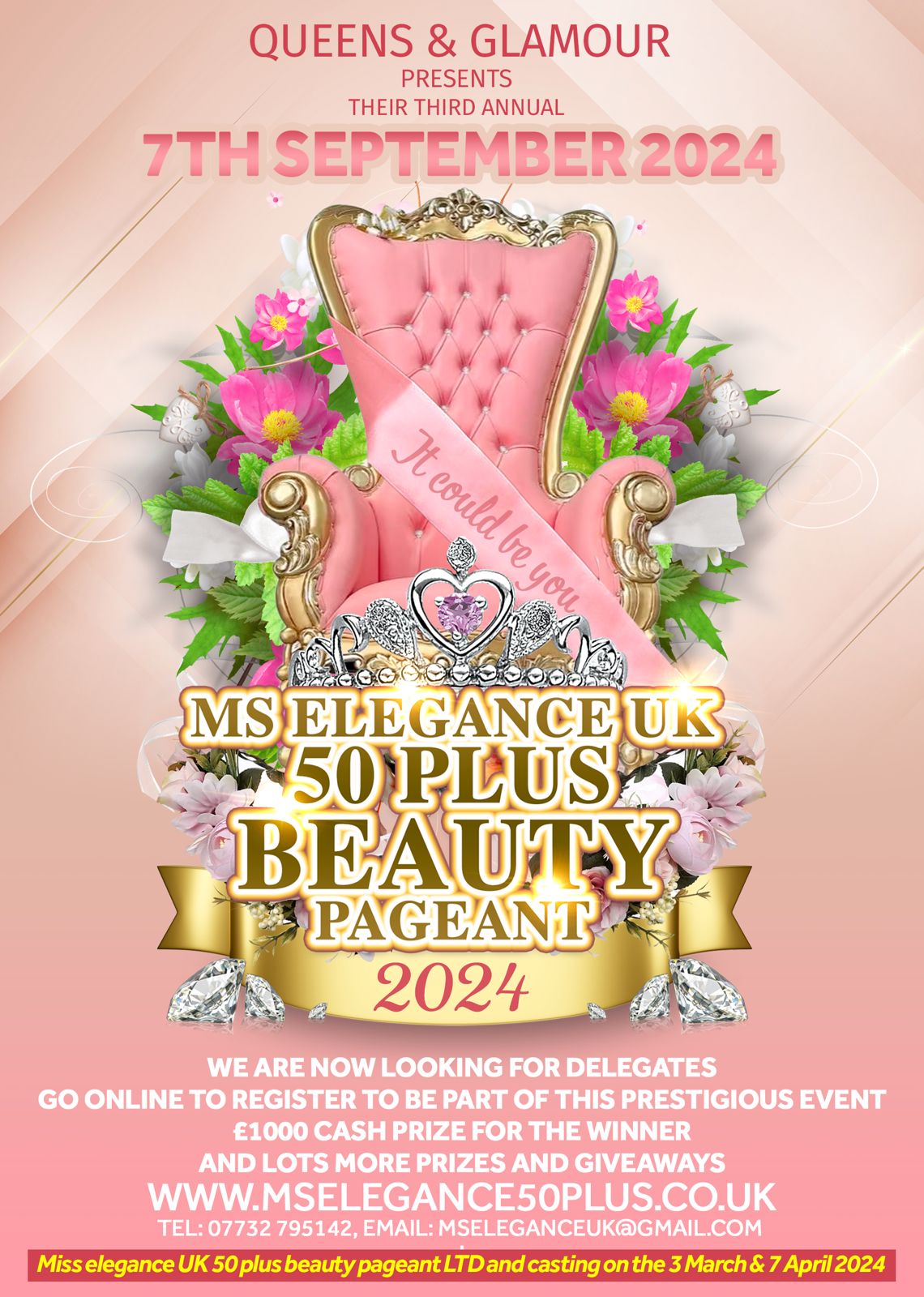 Our mission at MS Elegance UK 50 Plus Pageant Ltd, organized by Queens and Glamour Promotions, is to celebrate and empower women aged 50 and over in the United Kingdom. We aim to provide a platform where these remarkable women can represent their countries and cultures, showcasing their posie, presentation, style, and elegance.